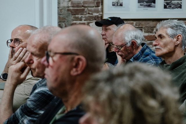 Libanonveteranen luisteren naar een lezing over morele verwonding: het diepe schuldgevoel dat kan ontstaan bij militairen als zij zich tijdens een missie anders hebben gedragen dan ze volgens henzelf hadden moeten doen.