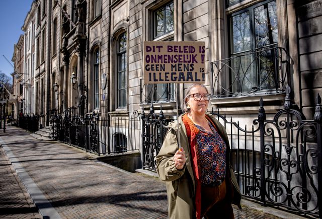 Protest tegen de nieuwe asielwetten voor de Eerste Kamer, tijdens de behandeling van de asielwetten.