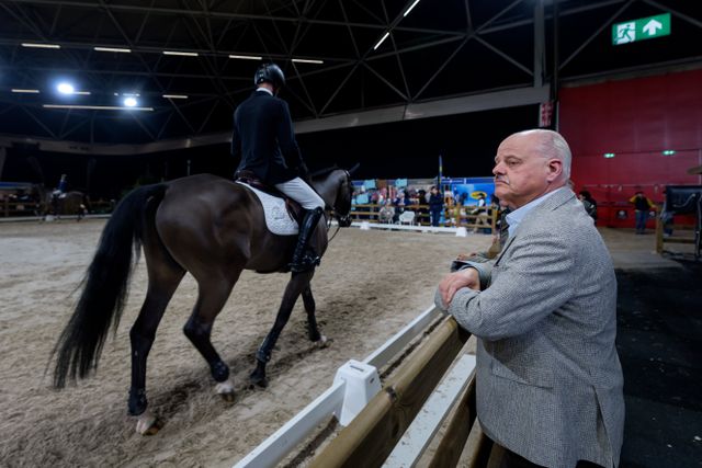 Eric Berkhof kijkt naar het losrijden bij Jumping Amsterdam.