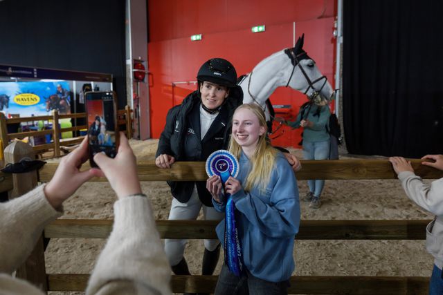 Een klein uurtje later krijgt Imagine een rozet opgespeld. De twee zijn zevende geworden, de beste Nederlandse combinatie vandaag. In de barrage ging er ditmaal één balk af. „Daar heb je Kim”, wordt gefluisterd door het troepje fans dat alleen voor haar langs de bak staat. Het meisje dat een handtekening krijgt, mag een tijdlang Imagines roze neus kriebelen.